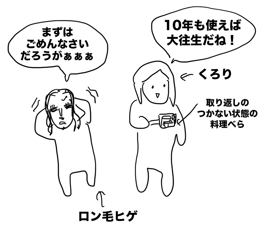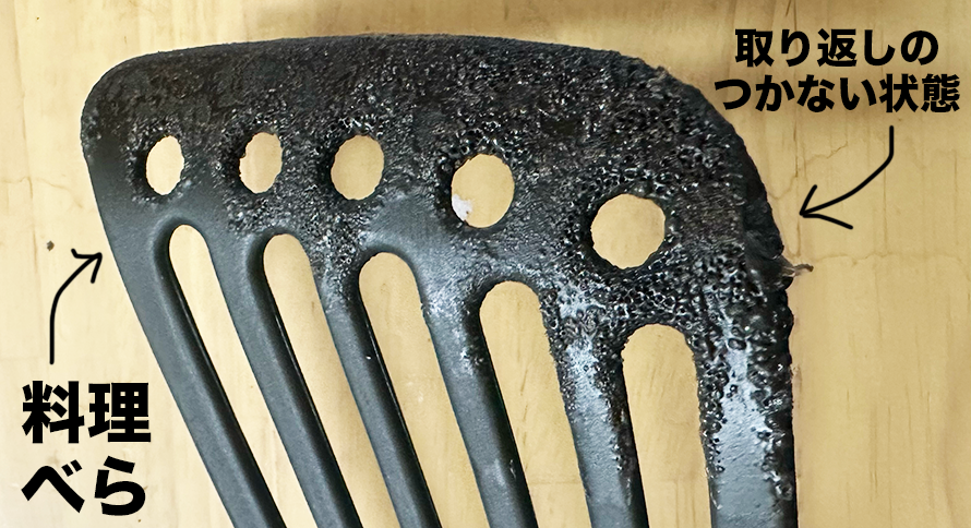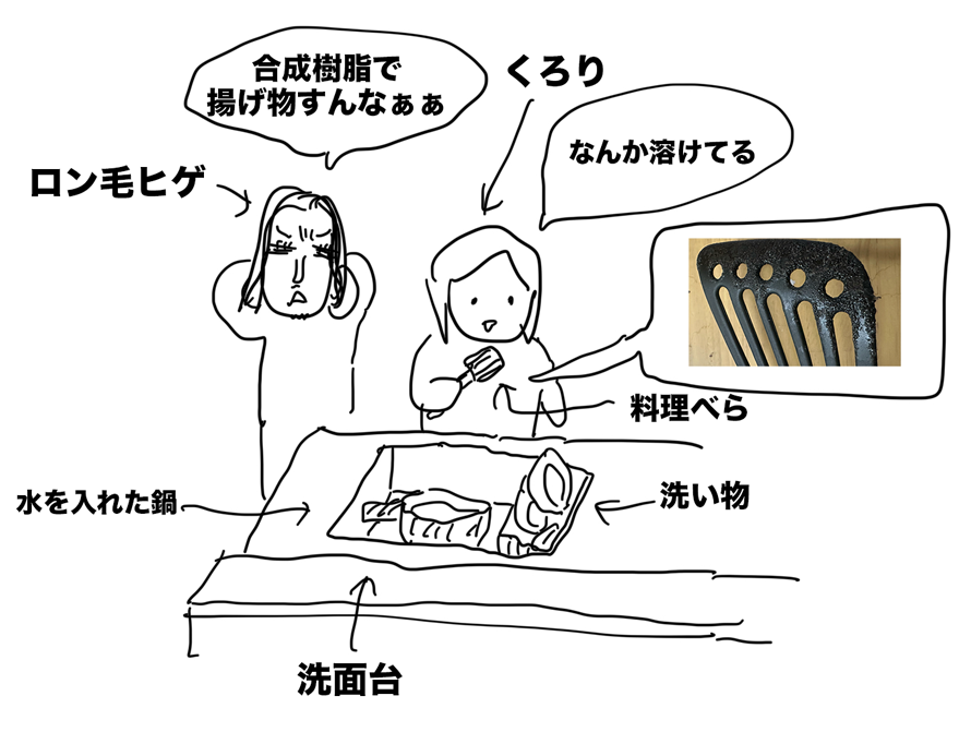 くろり「あれ、よく見たらこれ焦げじゃなくて、へらが溶けてないか?」