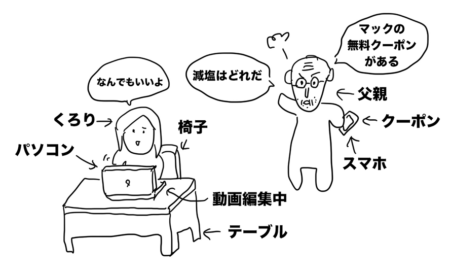 父親「マックの無料券が明日使用期限切れるから、みんな分を明日買ってくる予定だ。くろりは減塩しないといけないから、どれにしよう」