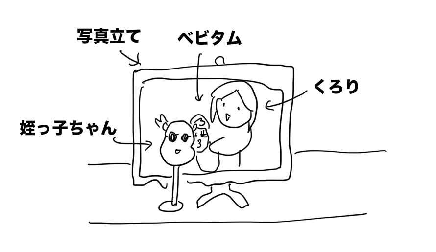 だからか、リビングに飾られているベビタムの写真の前に、自分の写真を配置する姪っ子ちゃん。