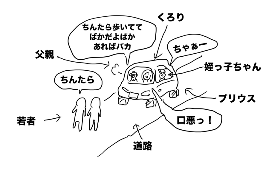 父親が車を運転中、前をのろのろ歩く若者を見て・・