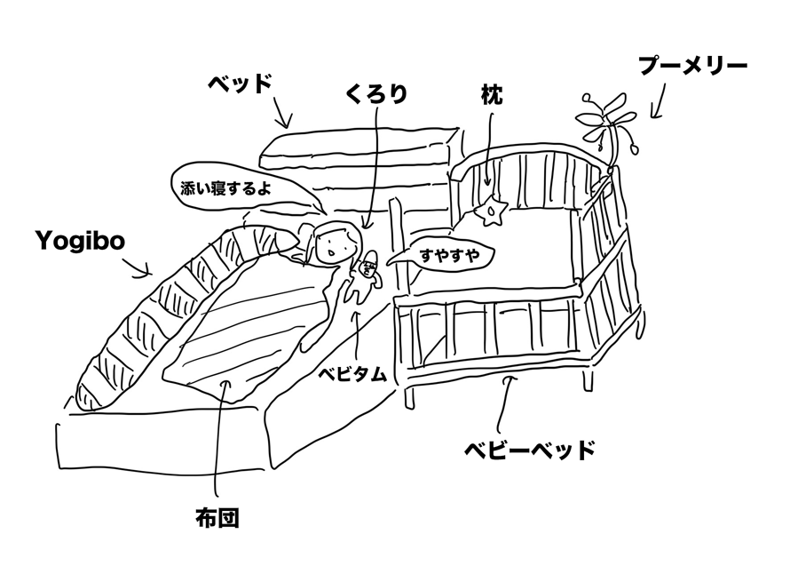 最近はベビタムを寝かしつけるのが面倒くさくて、ベッドで腕枕して寝ることが多い。