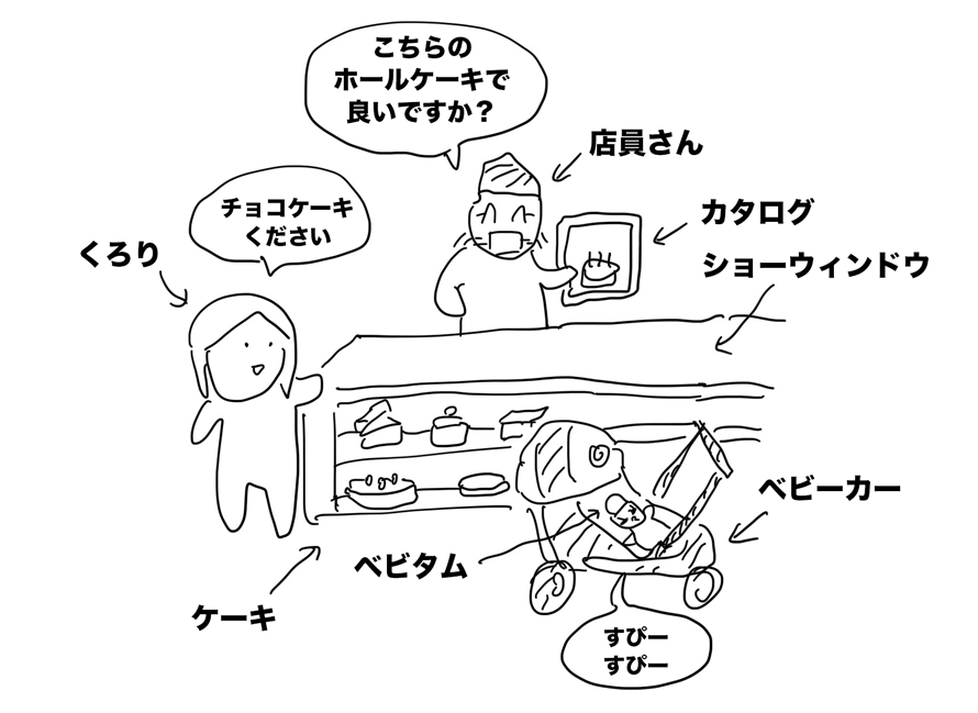 本当はデパ地下のおいしいケーキを買いたかったのだが、ベビーカーを押して買いに行くのはさすがに無理だったので、家前にある低糖質のケーキ屋で注文することに。