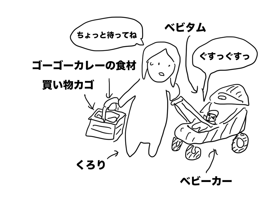 ベビタムにミルクをあげて落ち着かせてから、ゴーゴーカレーを作りロン毛ヒゲの帰りを待った。