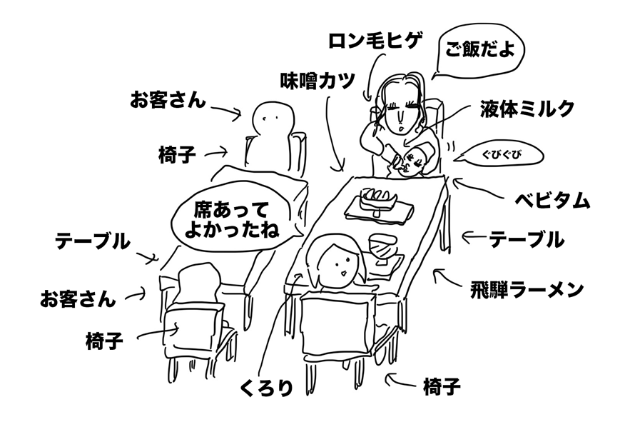 授乳室でおむつを変えた後は、お客さんで賑わいまくった中で、どうにか席を確保して液体ミルクをあげた。