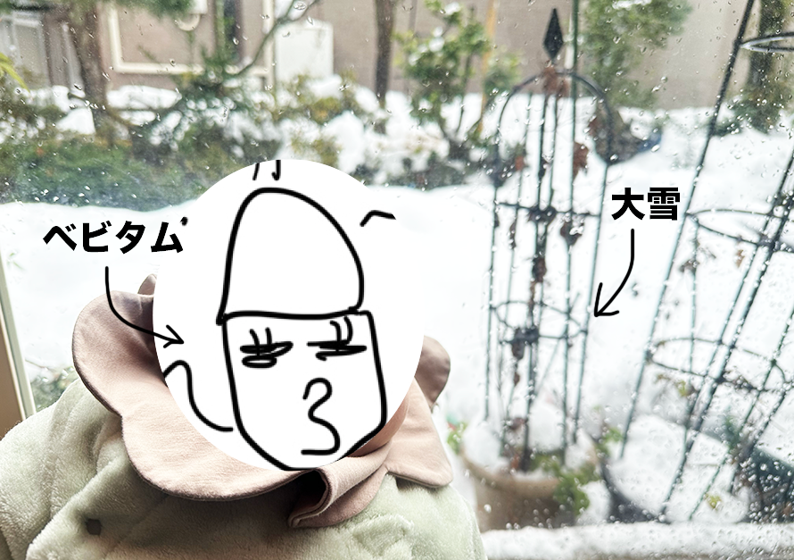 外は豪雪、フリージングコールドなので、ベビタムにふっかふかの恐竜服を着させ出発だ。