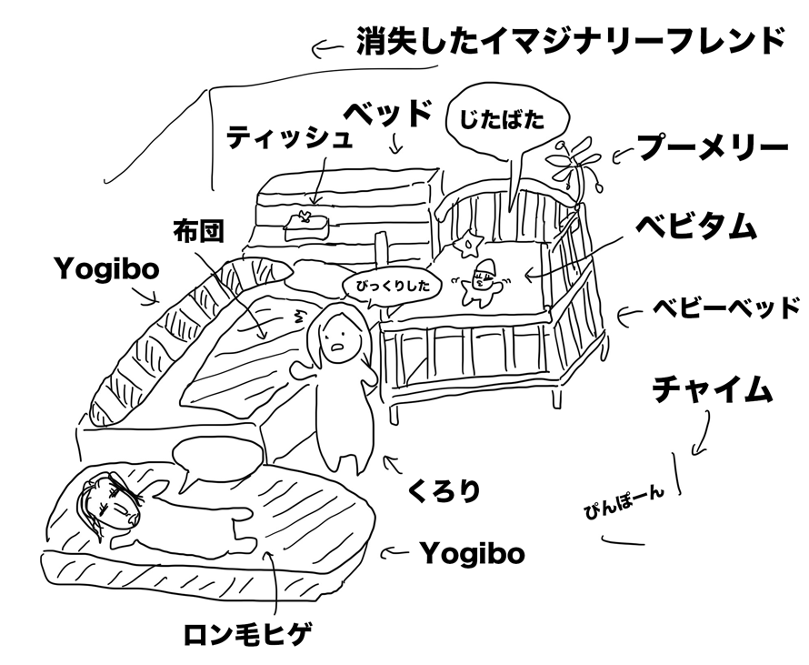 荷物を受け取ったら、すぐにベビタムに腕枕をして就寝。起床したのは13時くらい。