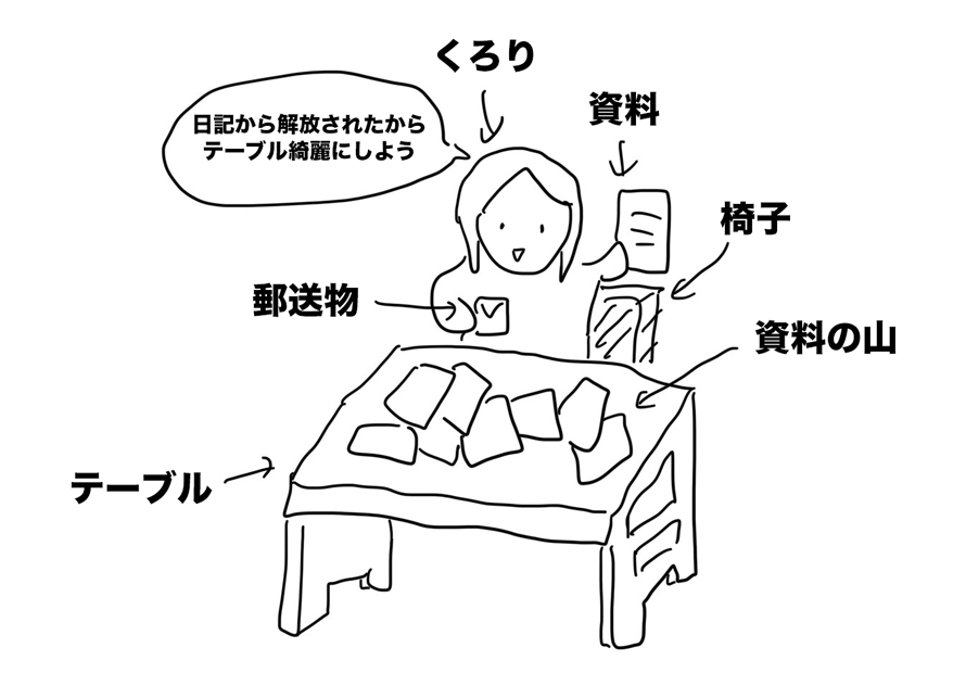これまで毎日、溜まりに溜まった日記を処理するのに必死で、テーブルの上の惨状を見て見ぬ振りだった。