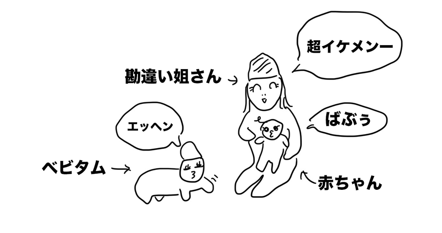 1ヶ月前に近所に越してきたばかりという勘違いママは、ベビタムの顔面を一生褒めてくれて、ベビタムも満更でもない様子だった。
