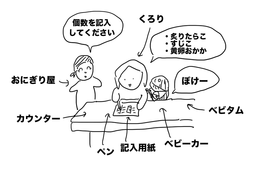 つい先ほど、子育て支援センターで「近くのおにぎりが美味しい」という情報を入手していたので、おにぎりを買ってセンターに舞い戻ることに。