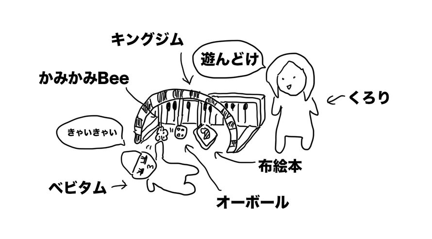 ただ、すぐにミルクを欲しがらなかったので、リビングのキングジムで一人で遊ばせよう。