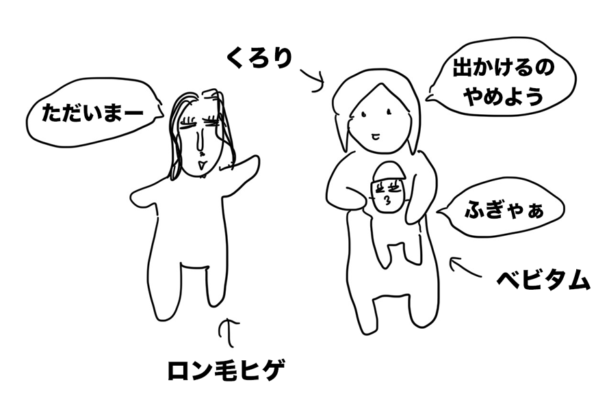 このまま二人っきりで、家にこもっているのもしんどいなと思ったので、抱っこ紐でお散歩にで行こう…と思ったところでロン毛ヒゲ帰宅。