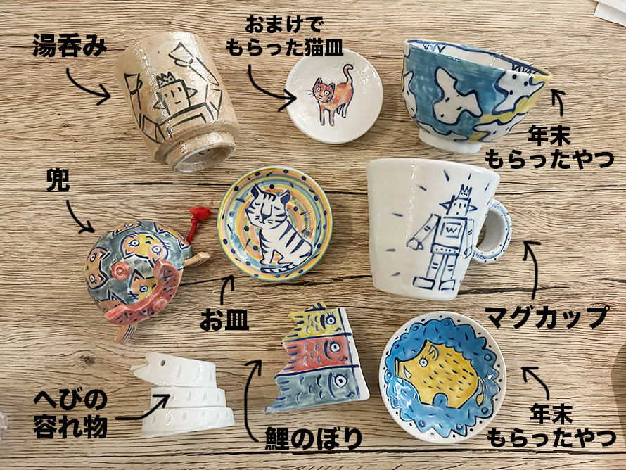 兜と鯉のぼりの陶器や、湯呑みや小皿、マグカップなど、いろいろ吟味して6点くらいを購入。