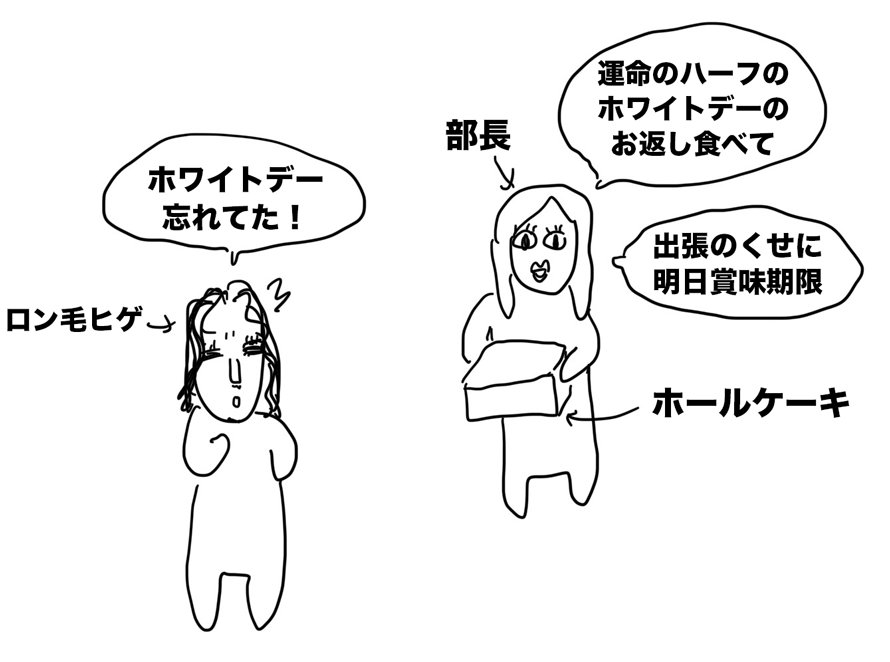 ロン毛ヒゲ「ホワイトデー忘れていた・・」
