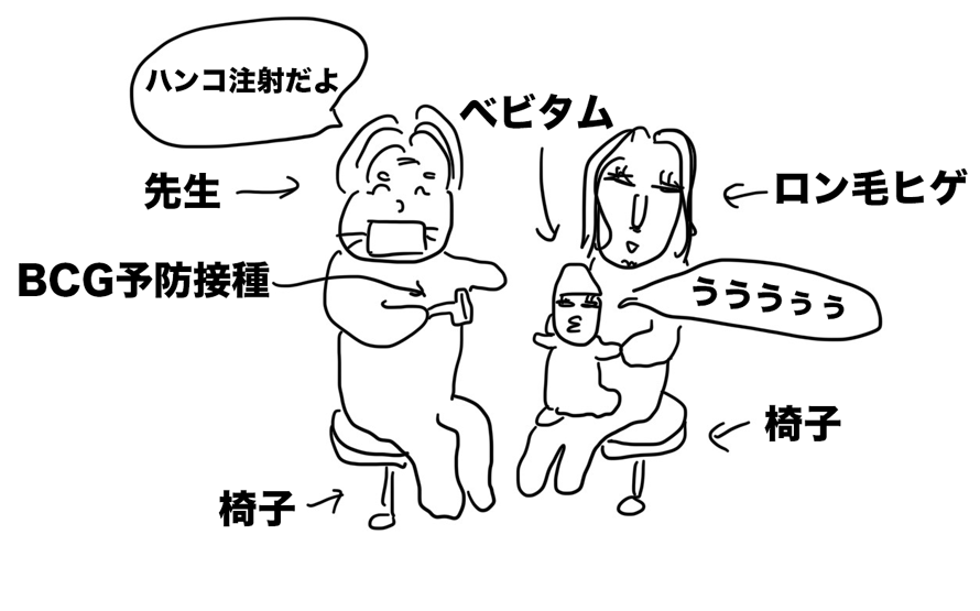 今日はベビタムの予防接種の日!ハンコ注射で有名のbcg注射!ロン毛ヒゲに「BCG」って言っても通じないのには驚いた。