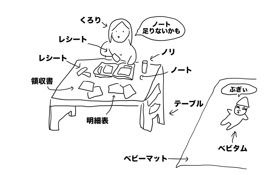 医療費系の領収書や明細書がたまりにたまっていたので、ノートにぺたぺた貼っていったが、ノートが足りなくなって中断。