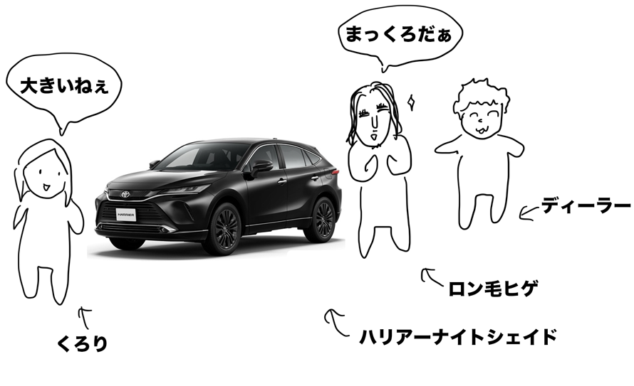 今回購入したハリアーは、ナイトシェードとかいう、車体が真暗になる最新版で、契約したのも発表から2日目という超新作。