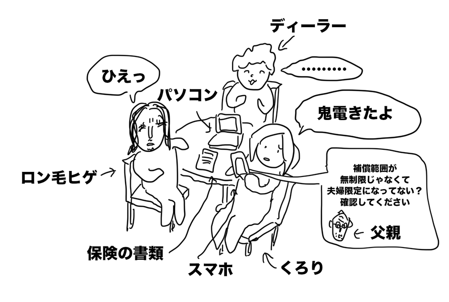 テーブルに座り、ディーラーと保険内容の確認タイムだ。