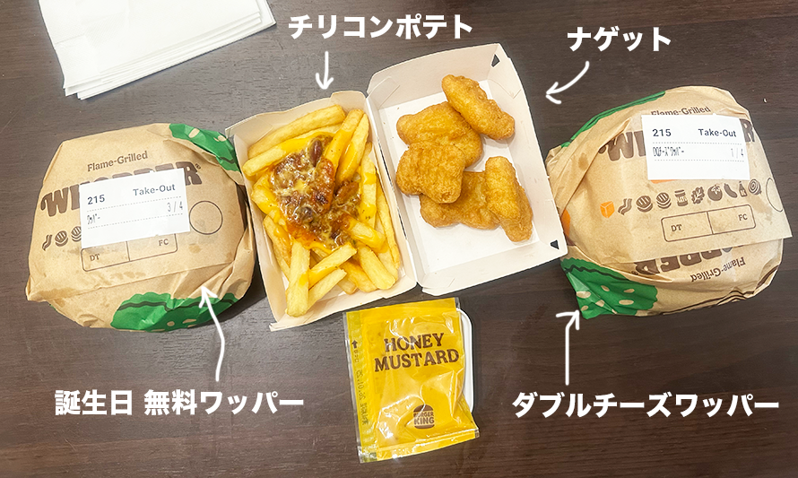 ちょうど誕生日クーポンが届いていたので、ワッパー1つ無料だった。
