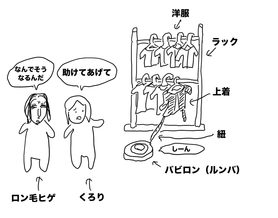そのまま寝続けたら、9時にルンバが起動し出して騒音で起こされるも、上着の紐に引っかかり停止。