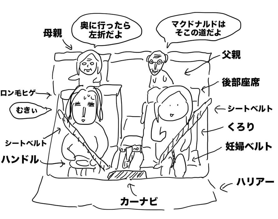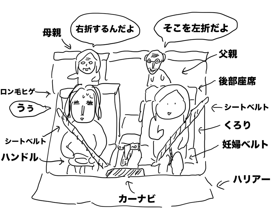 車にナビがあるので、問題なく到着できるはずなのに、後ろに座っている両親それぞれが事細かに道の指示をするという至れり尽くせりぶり。