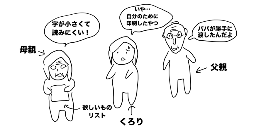 しかし、謎に複数枚コピーして母親に渡していたらしく、「文字が小さい」と文句を言われた。