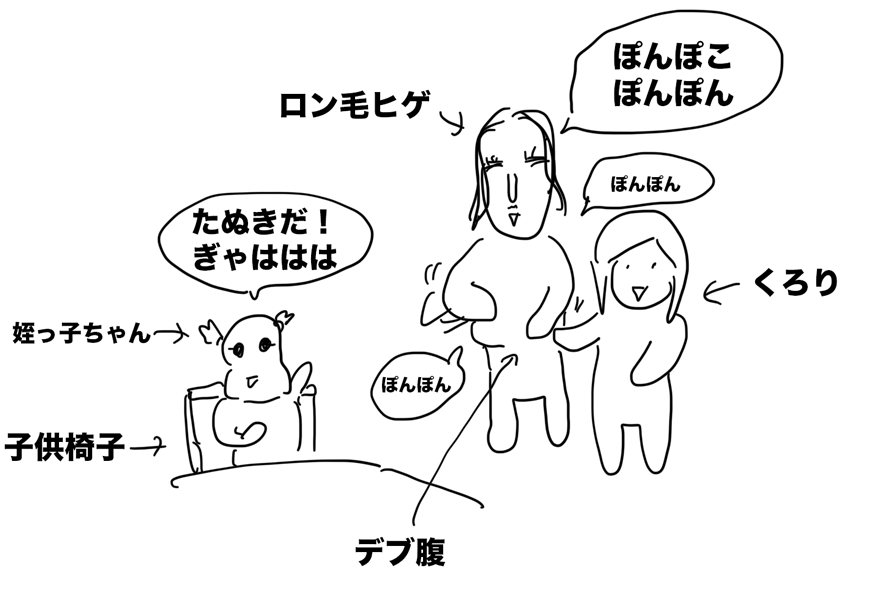 機嫌も良くなり、ロン毛ヒゲがお腹をぽんぽこしていたら、「たぬきみたい」と喜んでいた。