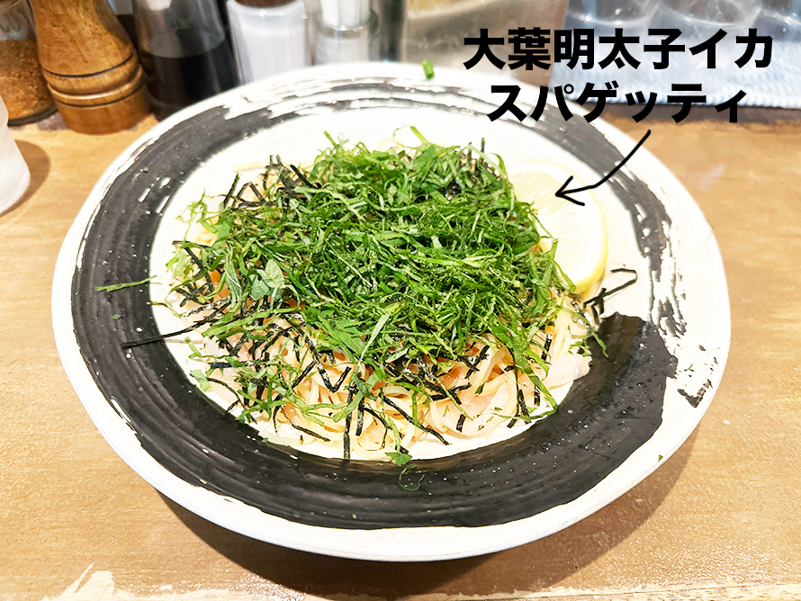 スパゲッティができあがり、お皿が前に運ばれてくる。