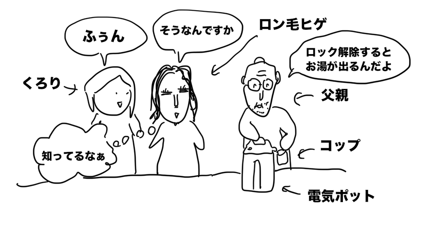 無事に除菌機の使い方をマスターして、これで安心だなと思っていたら、父親が電子ポットの使い方をレクチャーし出す。