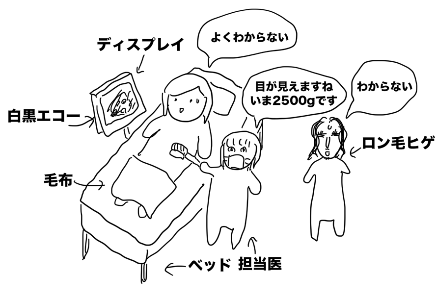 胎動検査の後は、検診タイム。タイミング悪くロン毛ヒゲがトイレに行ったので、一人で先に入室。
