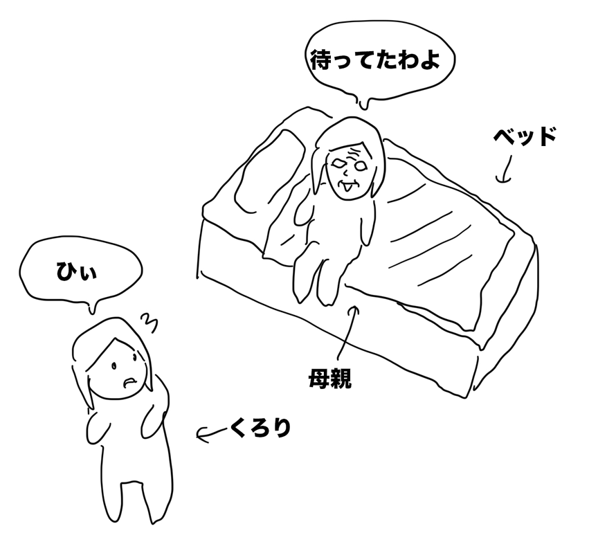 2Fで日記・1Fで姪っ子ちゃんと遊ぶというセットを3-4回ほど繰り返し、部屋に戻ると母親がベッドに腰掛けているではないか。