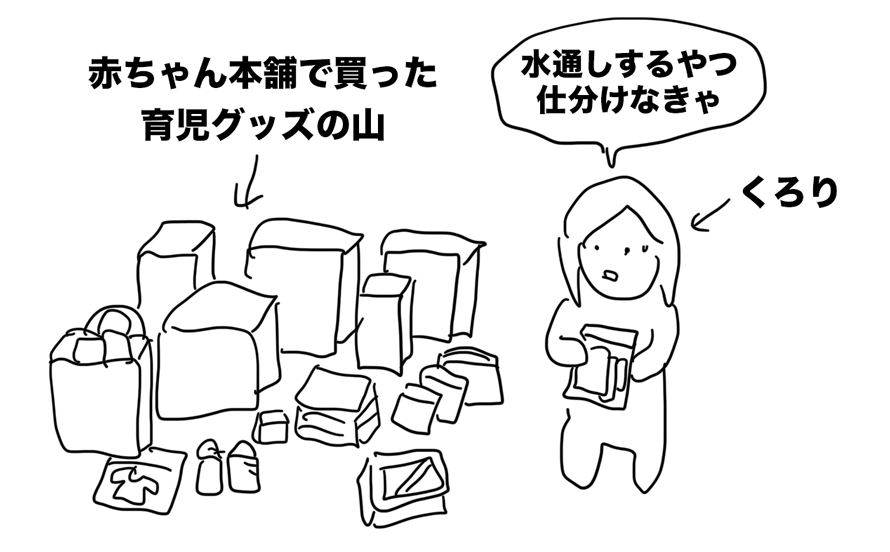 まあ、やらなきゃと思っていたし、洗うものを仕分けるか。ついでに、この間買った他の育児用品も整理するか。