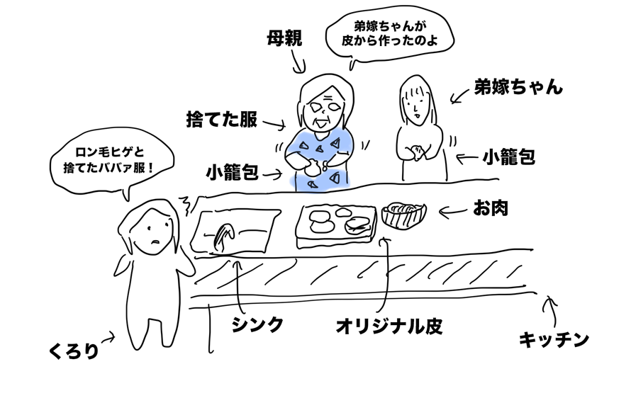 今日、弟嫁ちゃんは母親と小籠包作りをする日らしく、キッチンで頑張って作っていた。