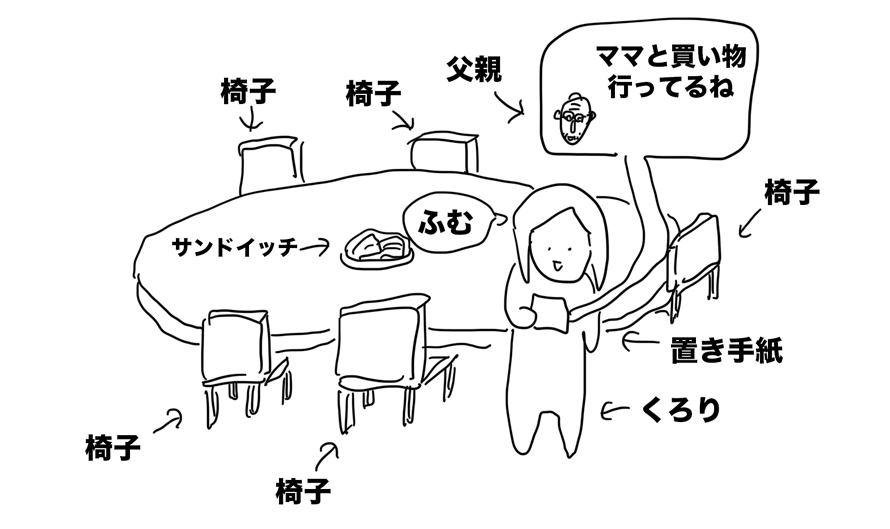 置き手紙「パパとママは買い物に行ってます。サンドイッチ食べてください」