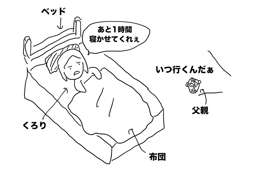 くろり「あともう1時間だけ寝かしてください・・」