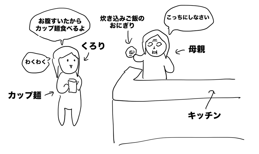 私は朝のサンドイッチ以降、なにも食べていなかったので、帰ったらカップ麺でも食べようとウキウキしていたのに、母親ストップ。