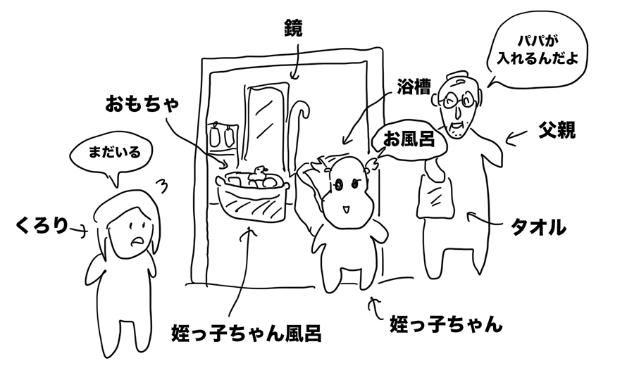 今日も姪っ子ちゃんのお風呂入れ係は父親らしい。