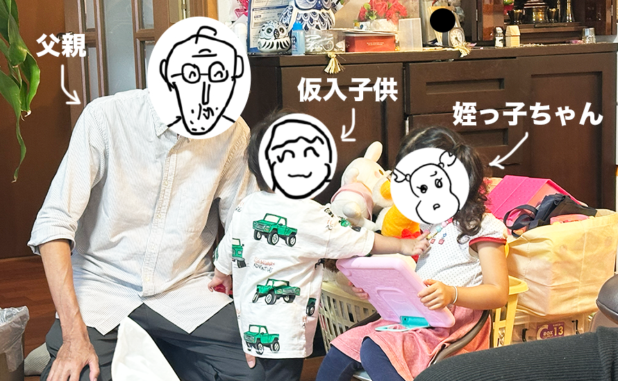 小さい子供が家にやってきたので、子供好きの両親は大喜び。