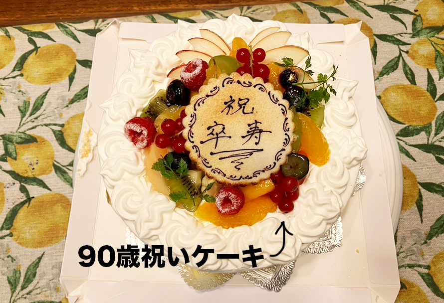 今日はおばあちゃんの90歳の誕生日だったので、そのまま全員ダイニングテーブルに座り、みんなでバースデーケーキを食べてお祝いをした。