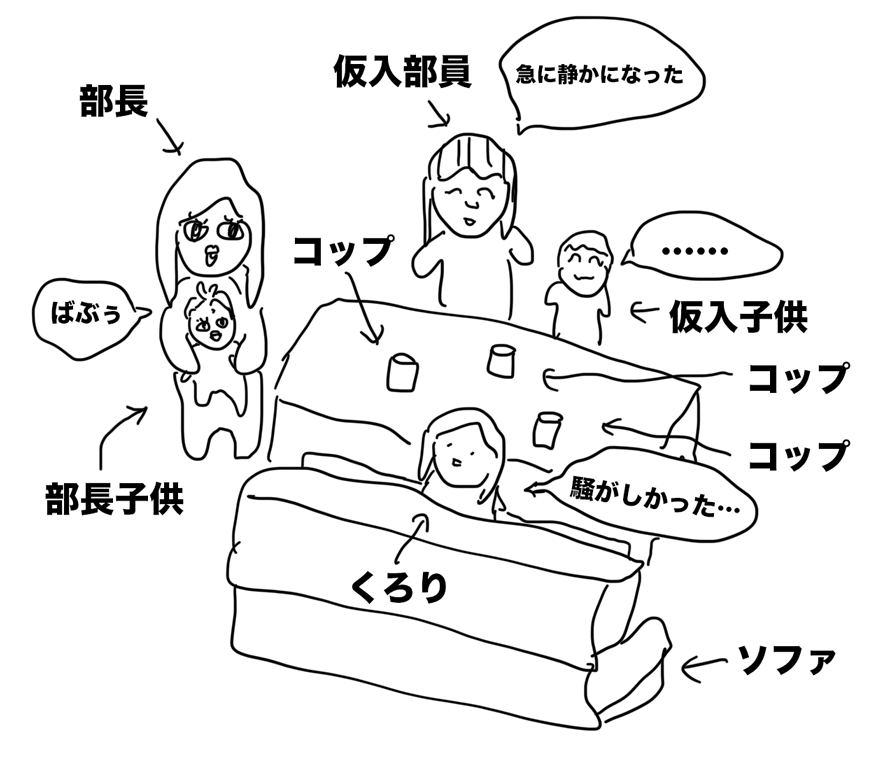 あれ、部長子供泣き止んでるじゃん、とソファを見ると・・・