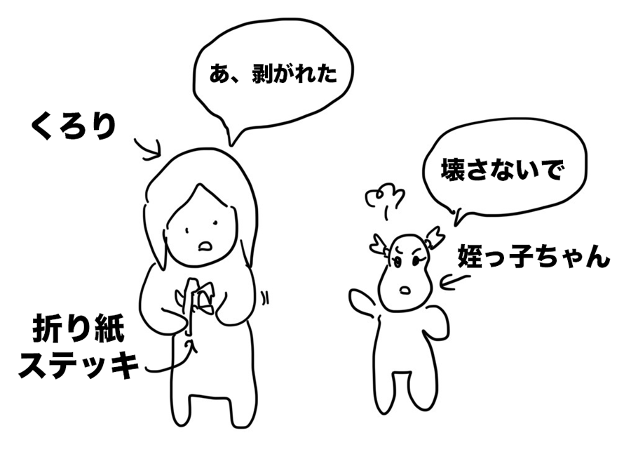 用意されていた夜ご飯を食べて、姪っ子ちゃんに渡された折り紙のステッキを受け取ると、なぜかキレ出す。