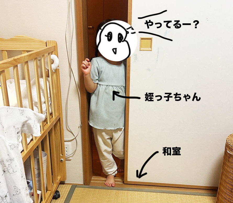 さっそく、ニコニコ顔で襖を開けて、部屋に入ってくる姪っ子ちゃん。