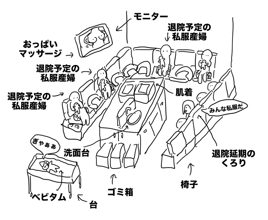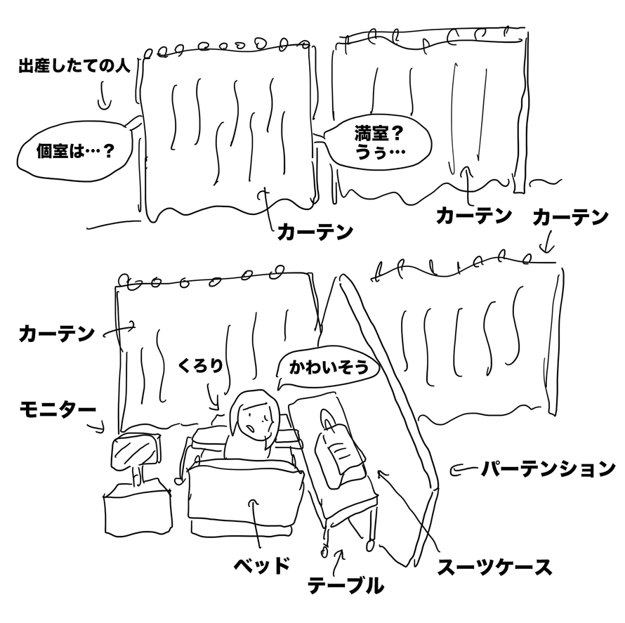 助産師「すみませんね、個室全部満室で、ここしか空いてなくて」