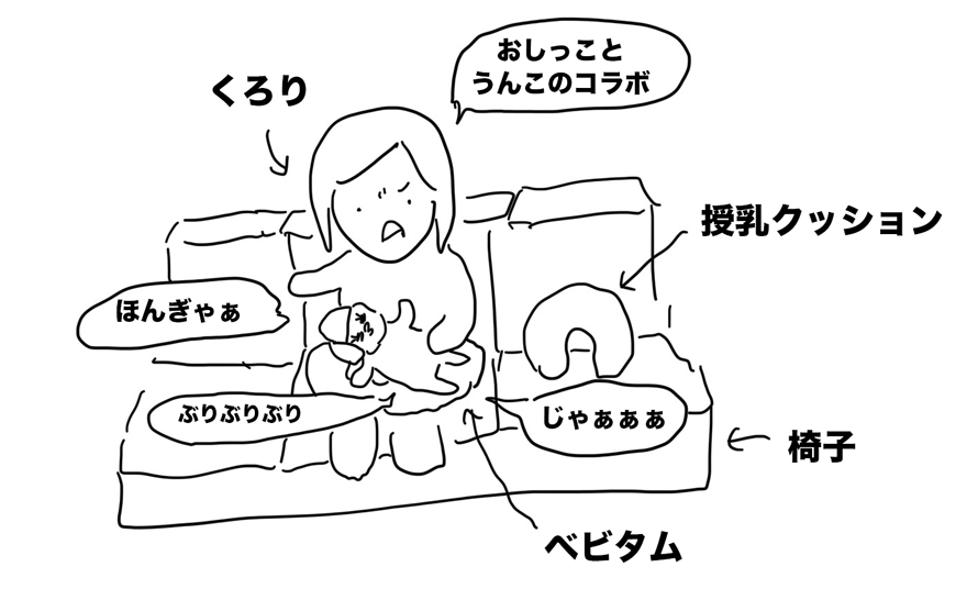 哺乳瓶でミルクをあげていると、まさかのうんこタイム。