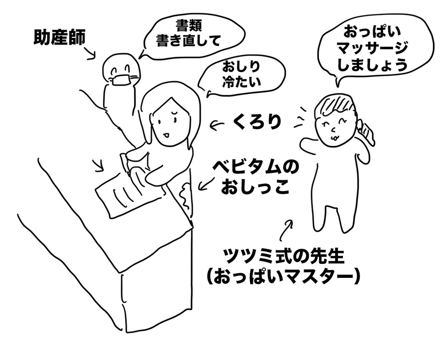 10時になると、いつものように血圧や股の状態をチェックしに助産師さんがやってくる。
