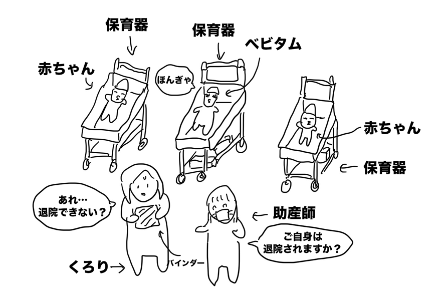 助産師「2300g超えてないので厳しいですね。赤ちゃんは入院継続ですが、お母さんは退院しますか?」