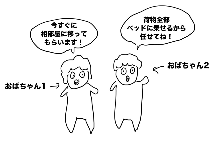 スタッフの人「今から相部屋に移ってもらいます」