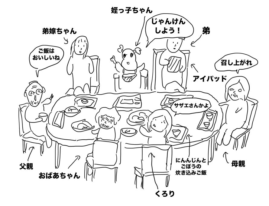 夜ご飯は、弟夫婦+姪っ子ちゃん+おばあちゃん+両親+私の7人で食卓を囲む形。
