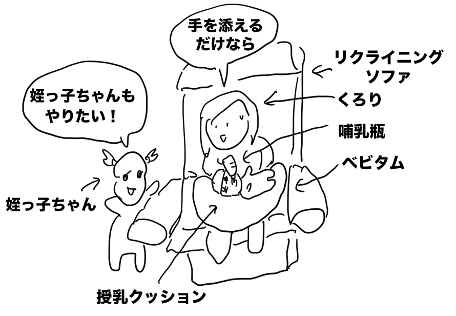 さすがにお願いすることはできないので、哺乳瓶に手を添えさせてあげた。