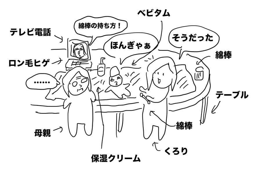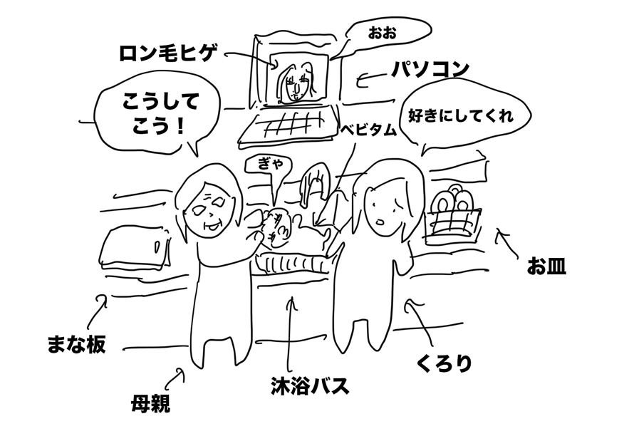 ちなみに、何をどう考えても、沐浴中に母親と揉める気がしたので、テレビ電話をつなげてロン毛ヒゲにオブザーバーとして入ってもらった。