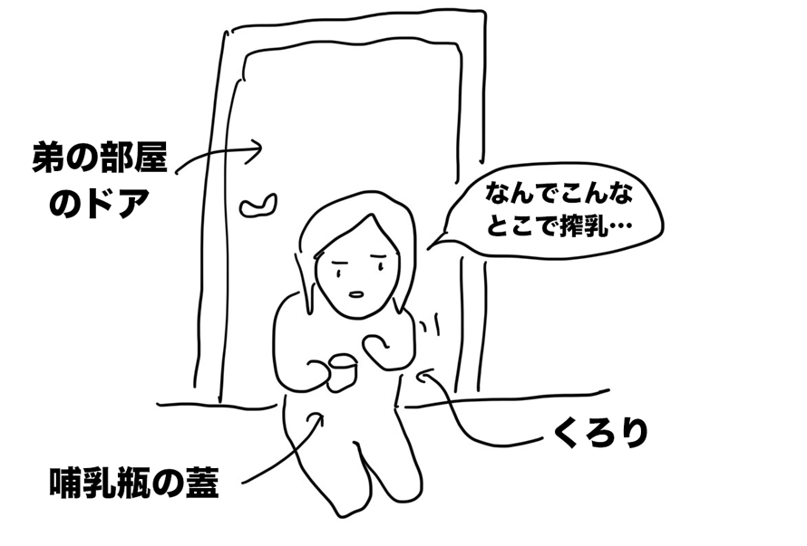 ということで、2Fにある弟の部屋でドアに背中をつけて搾乳タイム。